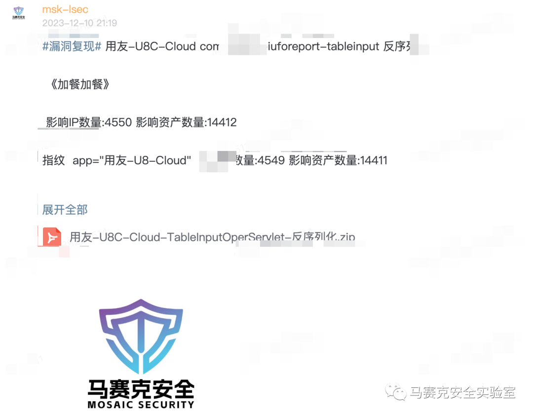 用*-U8C-Cloud com-ufsoft-iuforeport-tableinput 反序列化漏洞 ,攻击者可构造恶意请求获取系统信息等及其它安全风险。