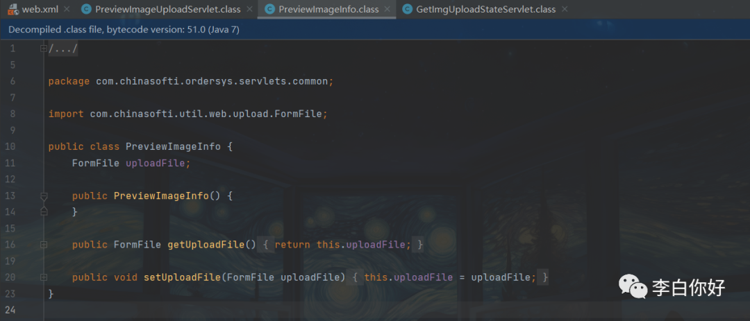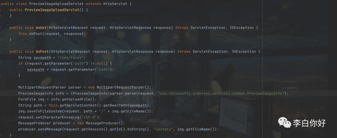 PreviewImageInfo info = (PreviewImageInfo)parser.parse(request, "com.chinasofti.ordersys.servlets.common.PreviewImageInfo");跟进 PreviewImageInfo.class ,没有进行过滤,因此我们可以构建表单直接上传