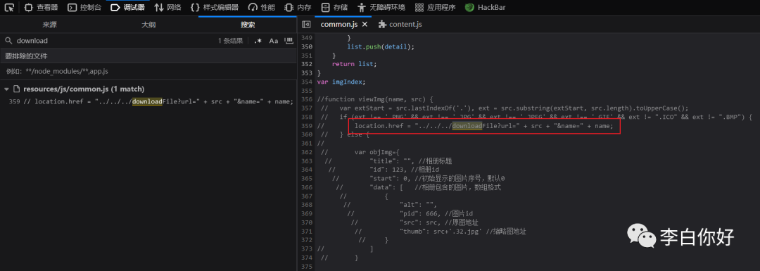 像这里我们通过检索download,发现一个被注释的下载接口,拼接路径尝试进行任意文件读取