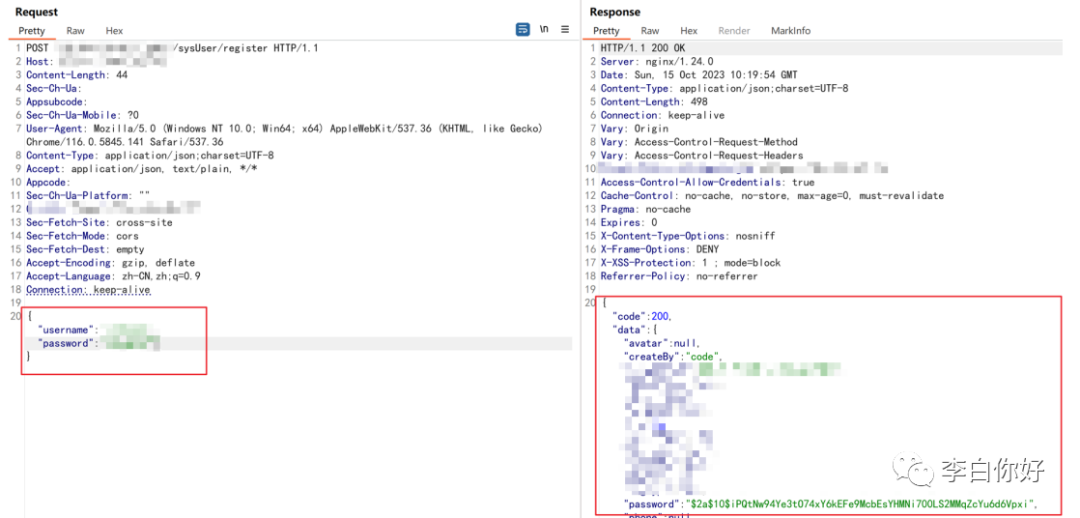继续从中寻找机会,把里面的接口和url拼接路径到Burp批量跑⼀下,这时候发现一个可以的注册接口,感觉有戏!