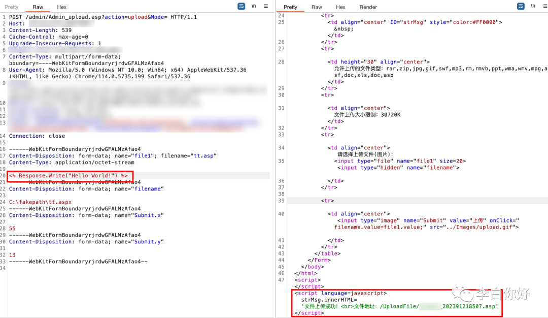 查看 web.xml 搜索.SaveAs upload查找可利用的点,像下面这个代码,我们通过检索发现两处疑似上传的接口