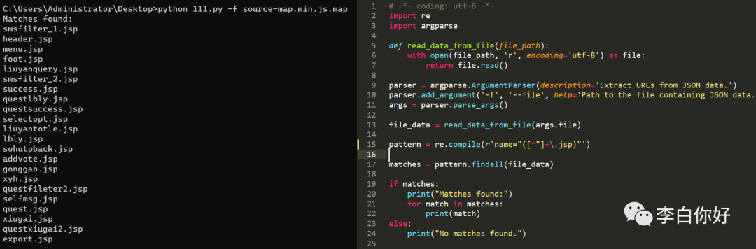 使用脚本提取路径,提取后的结果可作为字典放到burp进行fuzz