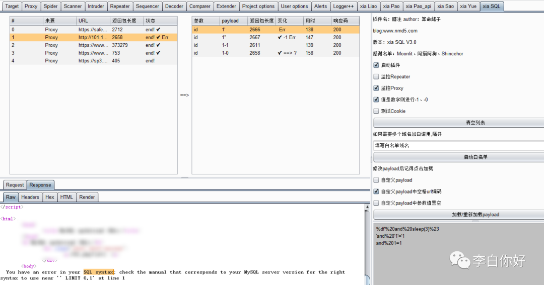除了被动扫描以外,我们还可以通过手动添加单引号、双引号去查看返回包,若存在类似报错则可能存在sql注入