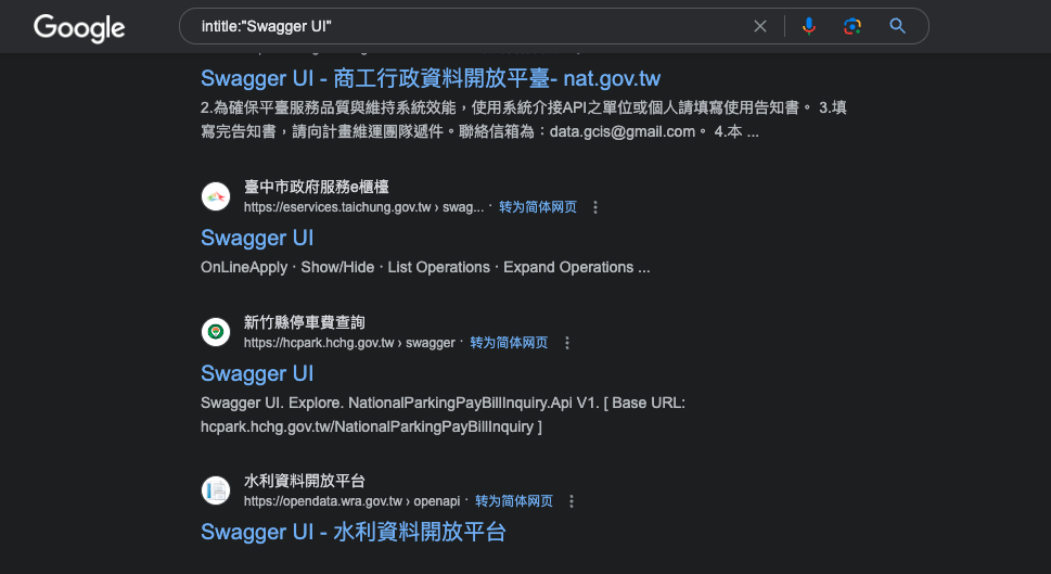 总结起来就是一套方便开发人员设计、构建 API 的框架,国内外应用非常广泛,大家在日常信息收集的时候经常会遇到这样的系统,比如通过谷歌语法可以轻松找到: