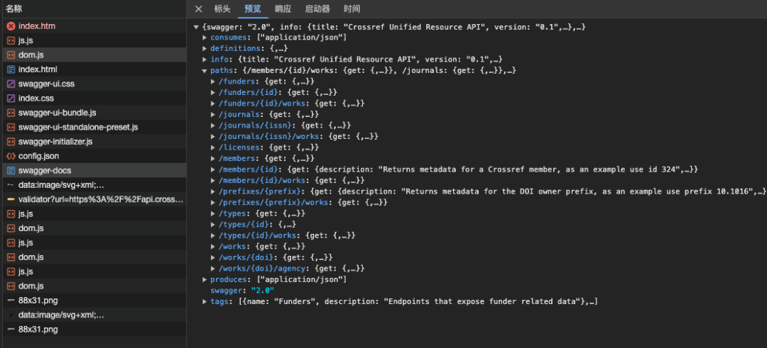 从上面的案例同样可以看出,返回接口数据的接口不太一样,第一个是 swagger.json,第二个是 swagger-docs,所以在收集这类数据接口的时候,需要指定常见接口名称和路径的字典,从而发现更多可以返回 API 数据的接口。