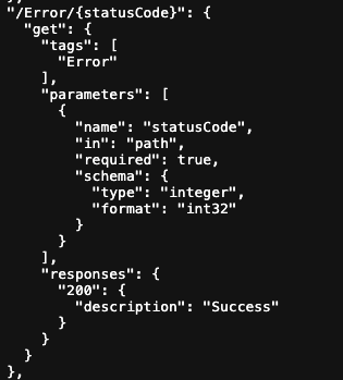 其中 statusCode 是路径中的参数,可以将默认值设为 1,get 表示该接口是通过 GET 方法请求,parameters 就是需要配置的接口参数,name 就是参数的名称,schema 就是参数的类型是数字,我们在自动提取的时候,可以根据参数的类型设置默认值,也可以直接都设置成数字,根据自己的需要来。