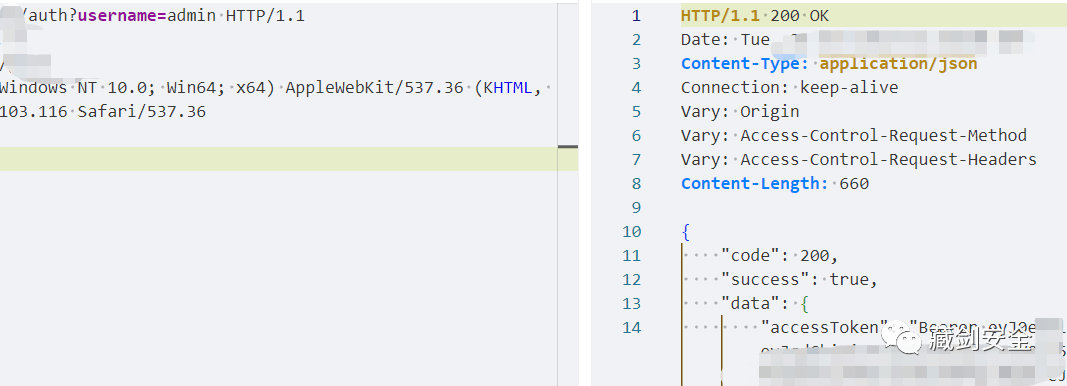 终于,在users.js文件中发现了这样一条接口:api/ token/auth?username=,根据提示发现该接口是获取token的接口,将接口进行拼接,尝试访问,提示需要传入用户名参数,尝试admin用户进行接口访问:api/ token/auth?username=admin,成功获取到token值。