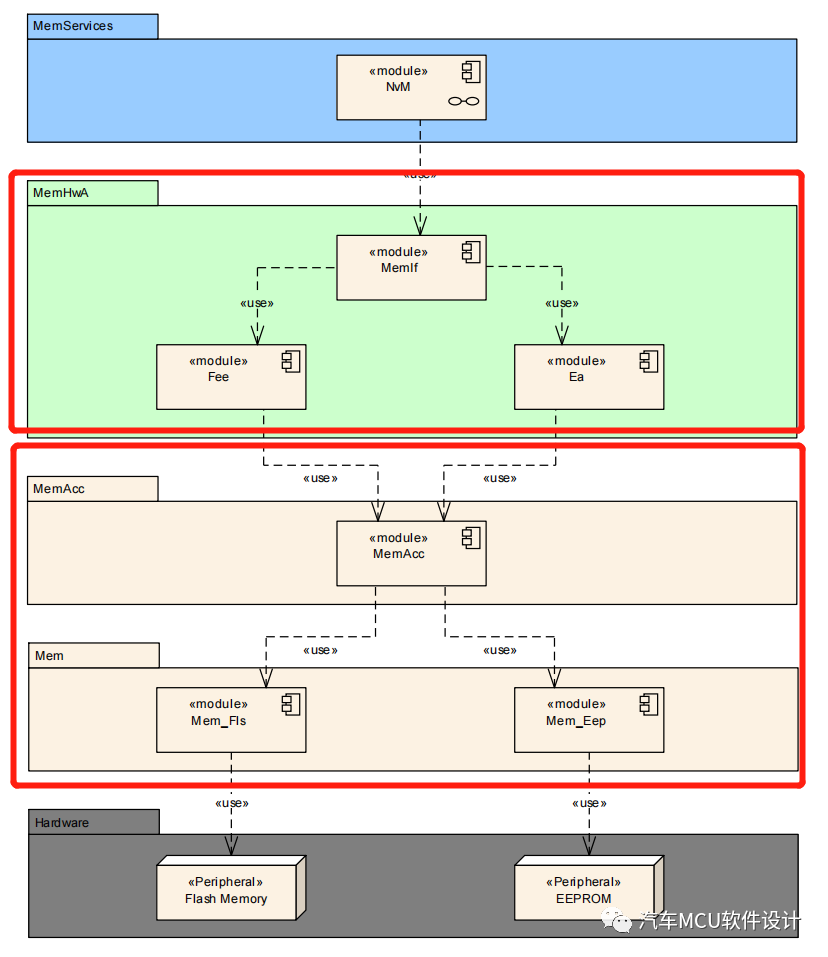 和所有的抽象层作用差不多,MemIf把Driver层的模块抽象出来提供给上层使用,具体层级结构如下: