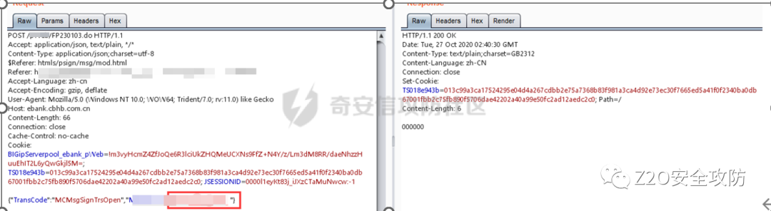 在抓取短信验证码的数据包后,在 response 可以看到短信验证码