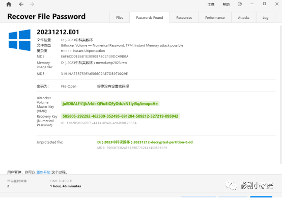 2、检材一bitlocker的恢复密钥是多少?(5分)