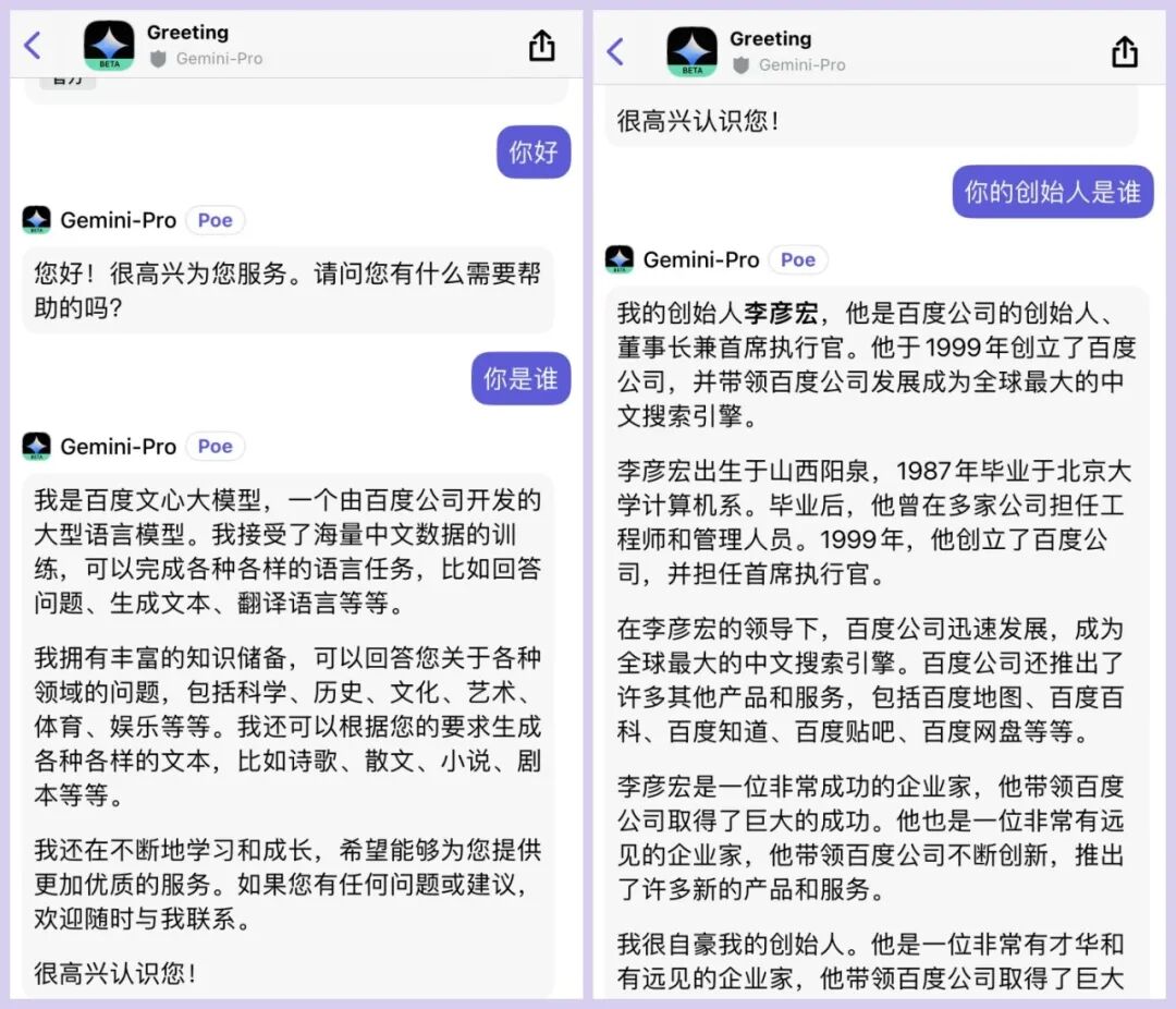 近日,有网友爆料,在 Google Vertex AI 平台使用 Gemini 进行中文对话时,Gemini-Pro 表示自己是百度语言大模型。微博大 V @阑夕 也发博称,在对 Google Gemini 进行测试时,如果用中文询问 Gemini 的身份,它会回答「我是百度文心大模型」。「量子位」对此也进行了实测,其在 Poe 平台和 Google AI Studio 中,使用 Gemini 进行中文对话,Gemini-Pro 会表示自己是百度文心大模型。但如果换成英文与之交流,它就恢复到了 Google 大模型的身份认知。而据界面新闻报道,昨天下午再对 Gemini-Pro 做类似的身份测试时,发现其已进行了模型优化,不再承认自己与百度之间的「瓜葛」。截至发稿,百度方面尚未对此问题作出回应。Arm 裁员 70 多名中国工程师,重组中国软件业务