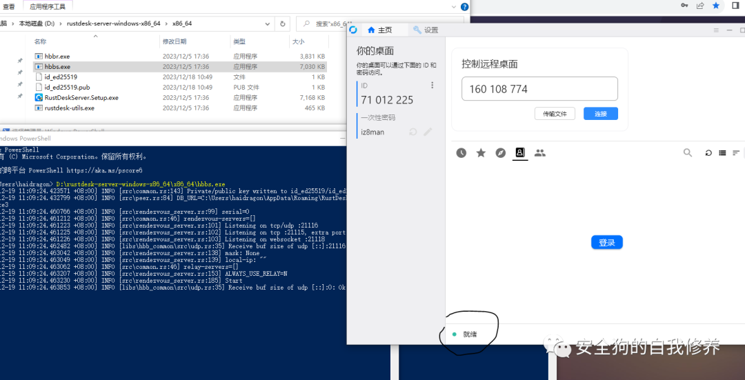 下载安装服务器程序(就是rustdesk-server在官方github上下对应平台的就行),我这里直接在物理机上安装了,然后运行他的服务器程序(hbbs.exe),不加参数所有配置都是默认的。