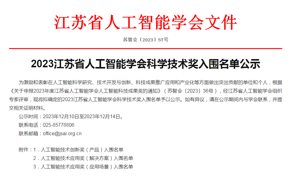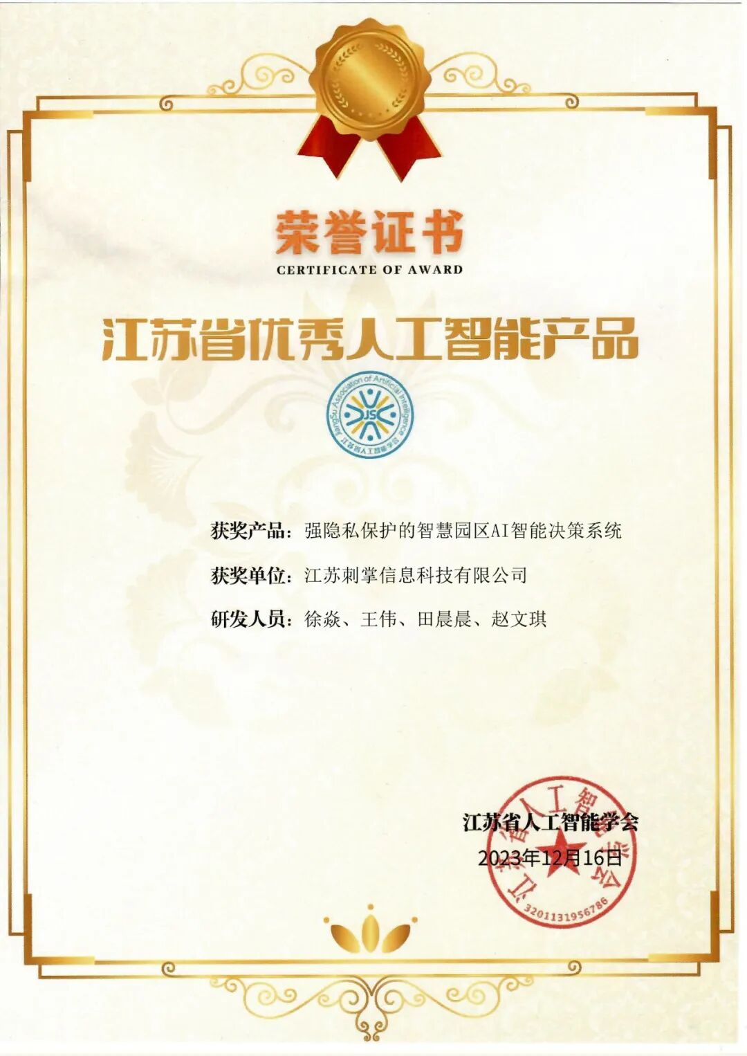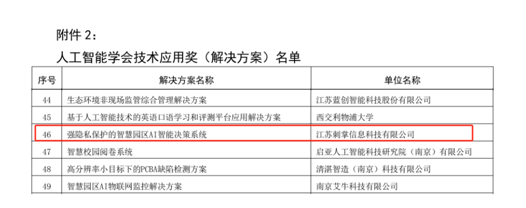 为激励和表彰在人工智能科学研究、技术开发与创新、科技成果推广应用和产业化等方面做出突出贡献的单位和个人,近日,经江苏省人工智能学会组织专家评审,将拟确定的2023江苏省人工智能学会科学技术奖入围名单予以公示,由Ms08067安全实验室母公司江苏刺掌信息科技有限公司打造的“强隐私保护的智慧园区AI智能决策系统”产品入围2023江苏省人工智能学会科学技术应用奖(解决方案)。