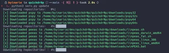 注意:当前版本的Qu1ckdr0p2仅支持通过pip工具进行安装,如果你直接将该项目源码克隆至本地的话,可能会出现一些意外问题。