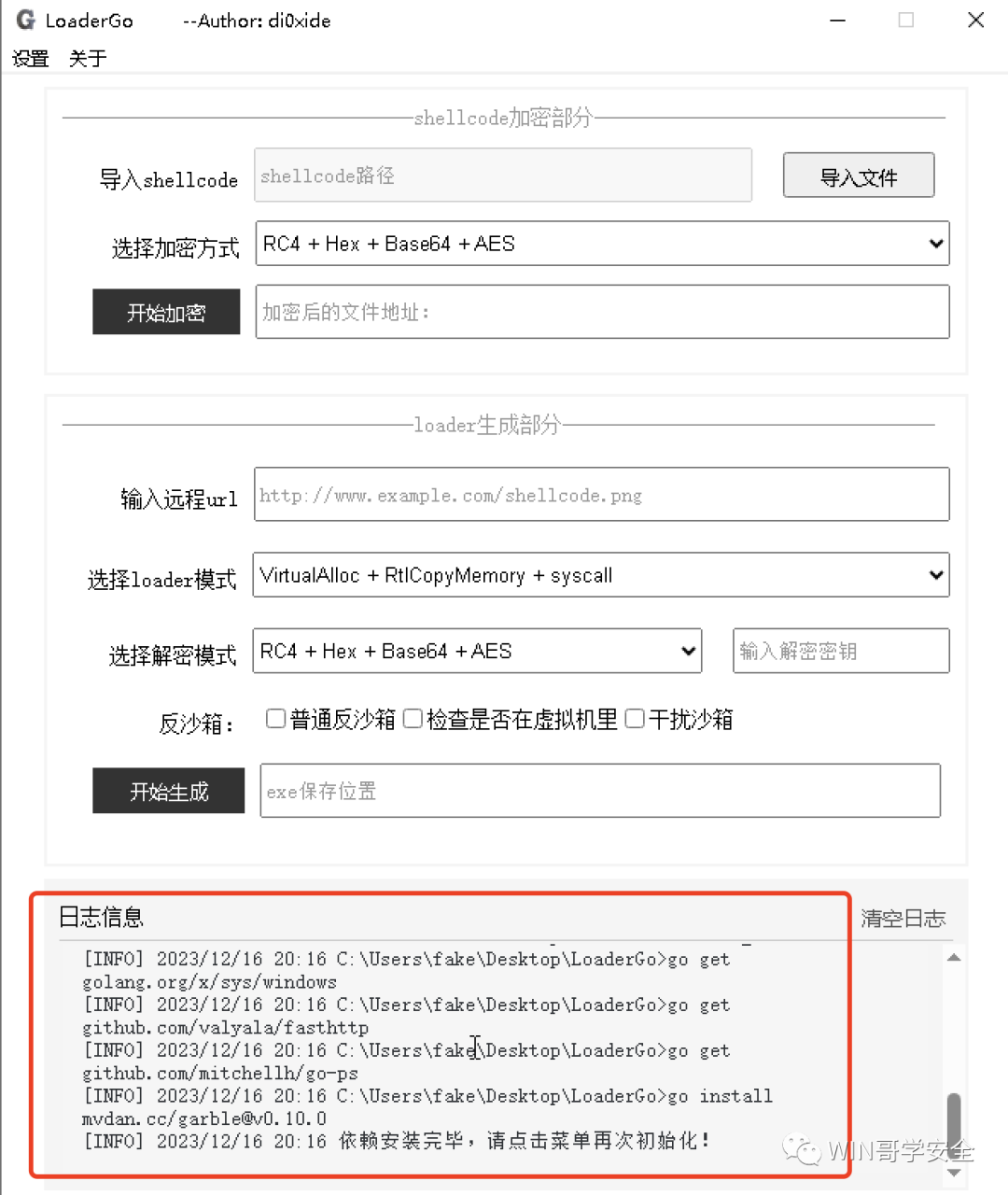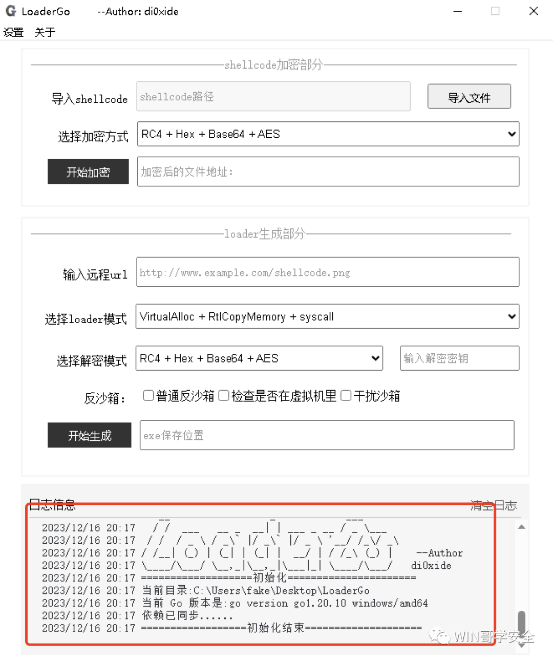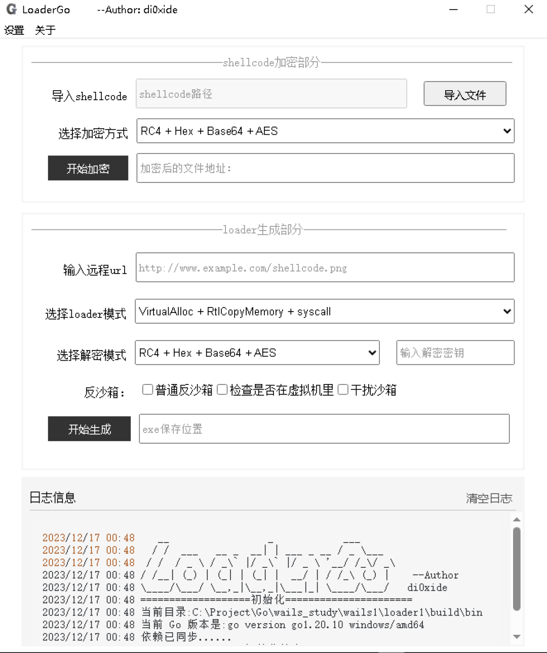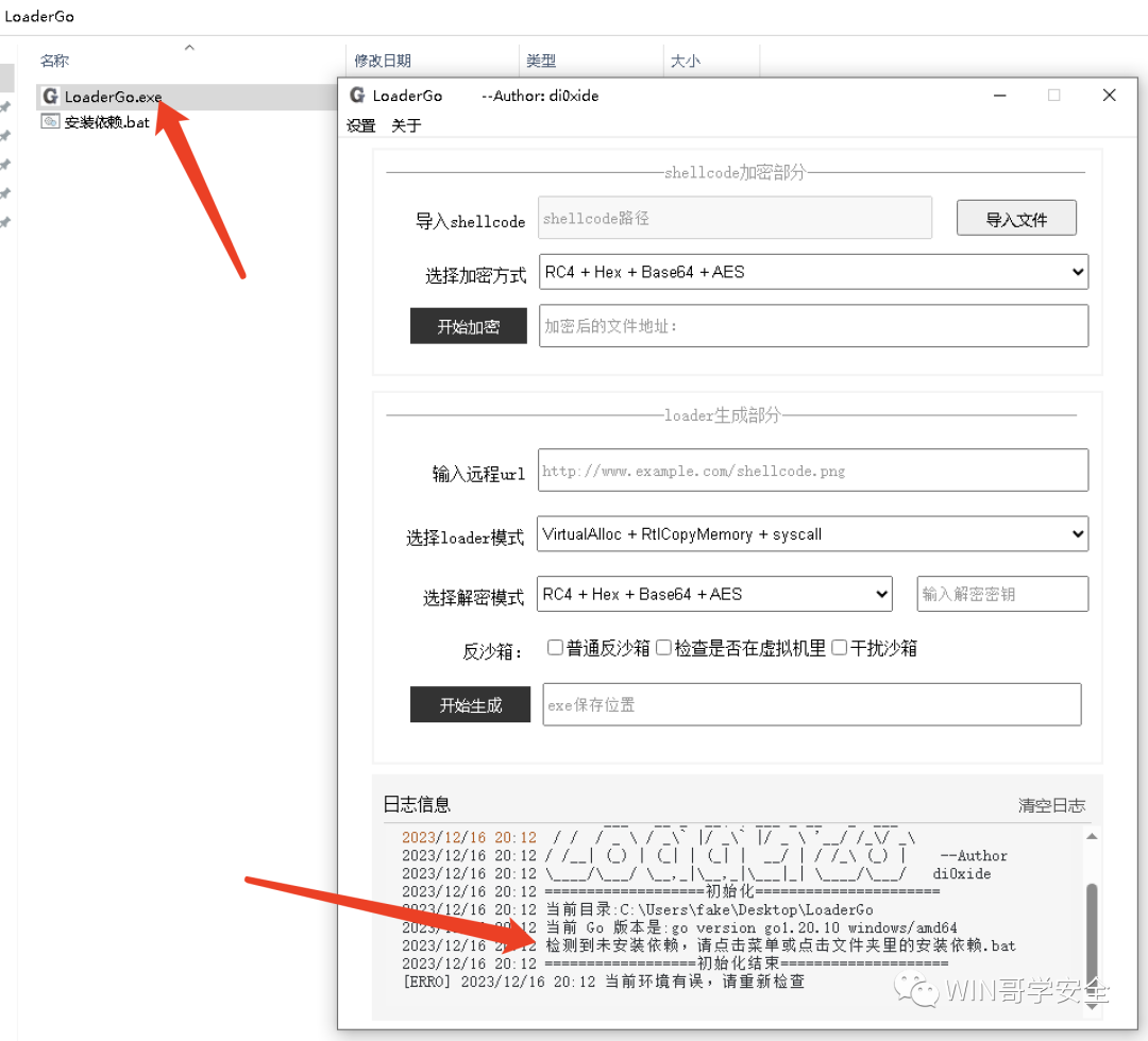 虽然LoaderGo程序本身已经通过Go编译好了,但是在生成exe的时候,还是需要go环境,因此运行环境需要有go1.20版本。