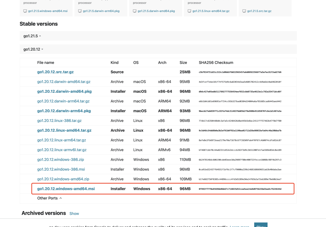 https://go.dev/dl/go1.20.12.windows-amd64.msi 下载安装go