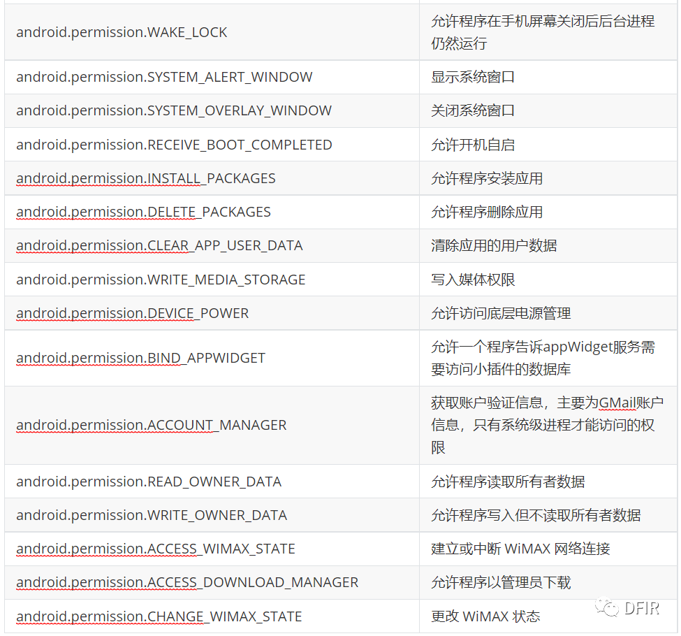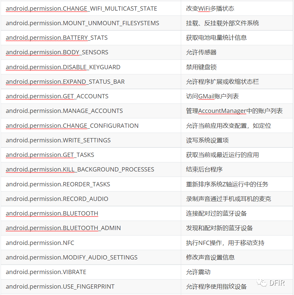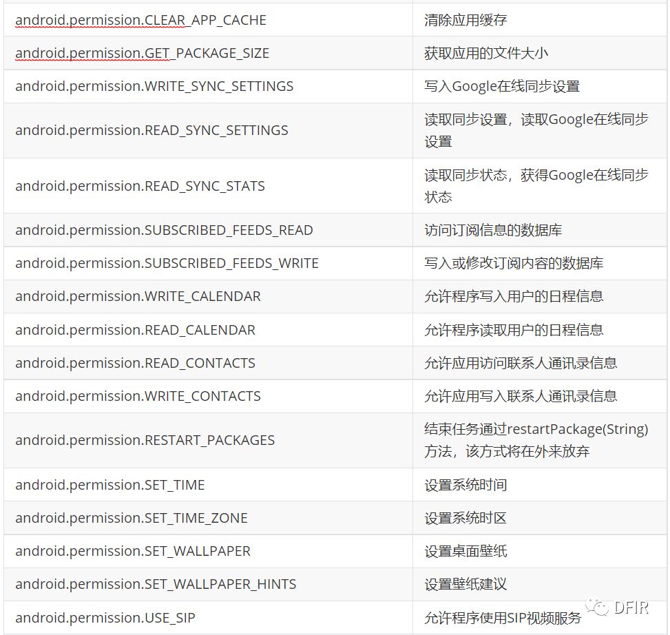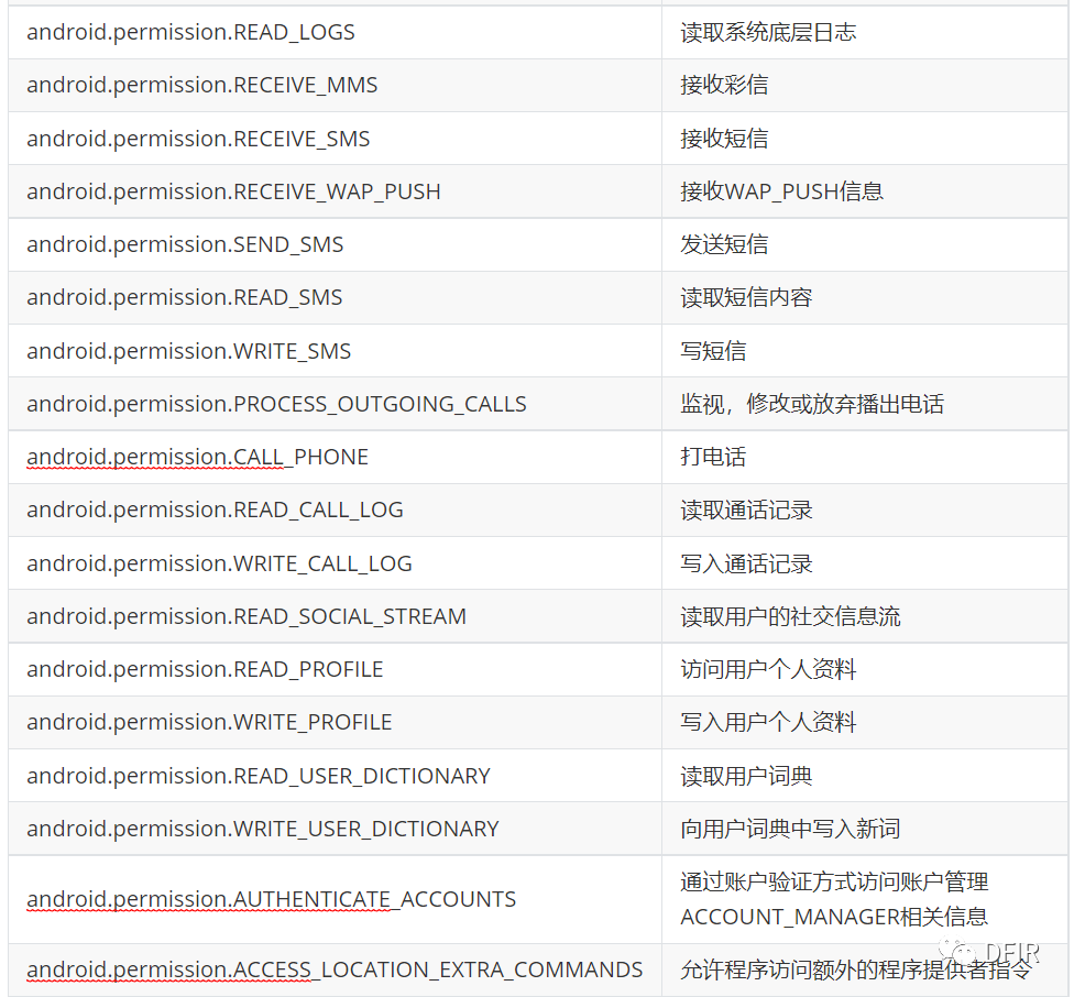 很多Android应用和游戏中会存在一些恶意收集用户隐私的行为,Google对Android的"权限等级"分为"normal"、"dangerous"、"signature"、"signature|system"(或signatureOrSystem)四大类。