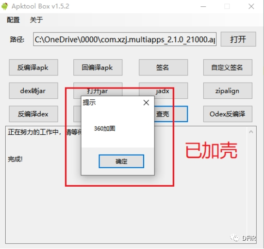 这时候,回到模拟器,打开要脱壳的App,后就开始自动脱壳操作,如图所示为脱壳完成。