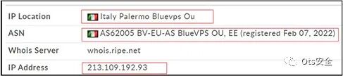 在意大利的 BlueVPS 上托管 C2 服务器的 IP,其 ASN 号为:AS62005。