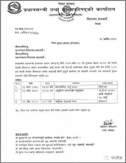 该组织的作案手法包括部署诱饵恶意文件,巧妙地伪装成来自尼泊尔总理办公室的通信。这种欺骗性策略强调了威胁的高级性质,采用了一系列技术,包括电子邮件鱼叉式网络钓鱼和利用文档中的恶意宏。这种情况的紧迫性需要相关利益攸关方的迅速关注和协调行动。
