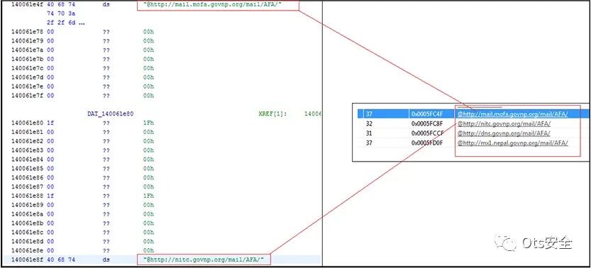 该二进制文件有几个硬编码的 URL,可能是替代的 C&C 服务器 URL。以下是网址: