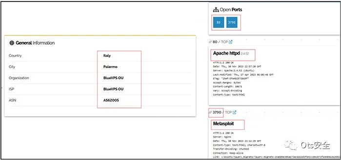 服务器是Apache和Metasploit,运行在端口3790上,用于开放远程连接。