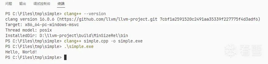 本文的编译方法不需要对LLVM源码进行任何改动,除了VS2022以外不需要安装任何额外的软件或者依赖。首先,保证你的Windows上安装了VS2022。其次,保证你的VS2022安装了MSVC,一般勾选了使用C++的桌面开发就应该满足条件了。别忘了把这两个给勾上,虽然编译LLVM的时候用不上它们,但是编译完了我们可以把编译后的与自带的进行替换,然后就能使用MSBuild工具链调用我们自己的LLVM进行编译了(具体方法参考隔壁,这里不赘述了)。然后是重点,一定要从设置里把当前系统区域设置给改为英语(美国)并重启系统。准备好编译环境后,从GitHub上把LLVM的源码clone下来,选择LLVM16的branch,最后一个版本应该为16.0.6(VS2022自带的是16.0.5,不过基本没啥影响)。git clone https://github.com/llvm/llvm-project.git -b release/16.x我们直接对着llvm-project右键=>使用 Visual Studio 打开点击视图=>终端,打开VS2022的开发者命令行(一定要用这个,不能用别的)。使用VS2022自带的cmake进行构建,等待项目构建完毕。cmake -S llvm -B build -DLLVM_ENABLE_PROJECTS=clang -DLLVM_TARGETS_TO_BUILD=X86这里指定的DLLVM_TARGETS_TO_BUILD=X86表示我们编译出来的LLVM只能编译为X86指令集(32位和64位),如果想支持更多的指令集可以去掉这个参数,但是会增大项目体积、增加编译时间。然后关闭当前的VS2022,找到生成的.sln文件并双击打开。下一步是可选的,将默认选中的Debug改为MinSizeRel,可以提高编译LLVM时的速度、减少编译产物的体积、提高LLVM的运行速度,但是如果后续是要进行LLVM本体魔改或者Pass开发的话,建议保持Debug不变。然后点击生成=>生成解决方案,开始漫长的等待,以这台i5-12500的机子为例,编译MinSizeRel耗时大概半小时。在对应目录下可以找到生成的可执行文件,我们将该目录添加到环境变量中。在VSCode的命令行中测试一下版本,确定是16.0.6。使用clang++编译后运行,可以看到正确的输出。当然我们的目的肯定不是仅仅编译一下而已(不然为啥不用VS2022自带的),更多的是对LLVM的前端、中端和后端进行魔改,或者编写自己的Pass,最后将其整合到MSBuild工具链中。得益于VS2022强大的解决方案,我们可以很轻松、很方便的对整个LLVM项目进行修改和增量编译。在Windows平台编写、编译并使用Pass的教程网上已经有很多了,但是步骤也是比较复杂的,等有空了我再写一篇用优雅的方式编写New Pass的文章。看雪ID:古月浪子