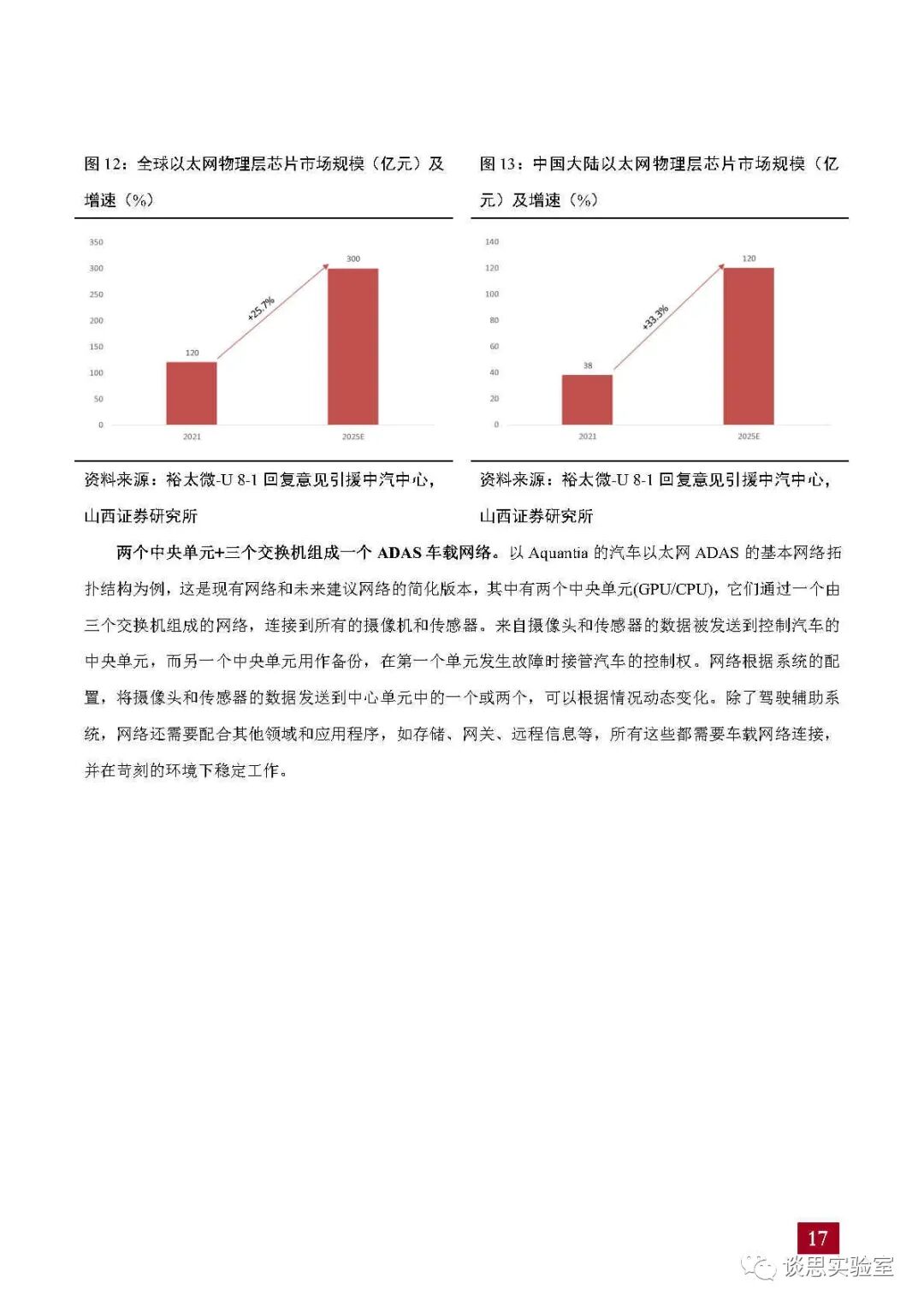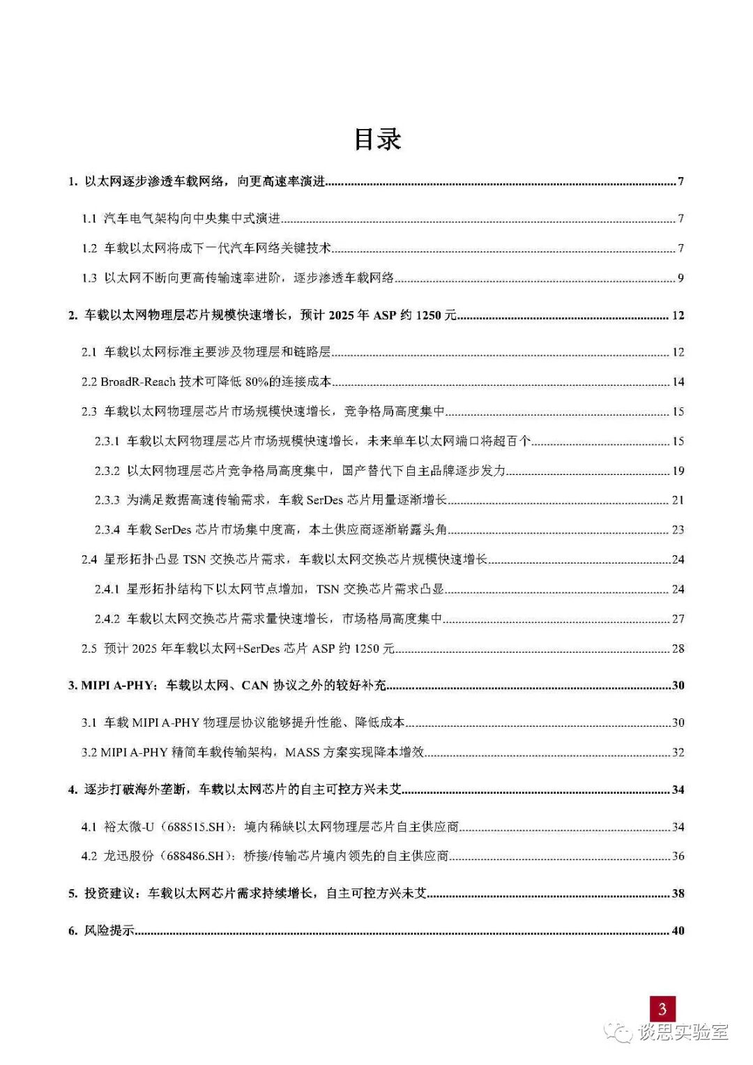 关注公众号 谈思实验室,回复“1219”,即可获得《2023车载以太网芯片需求空间及国内龙头企业分析报告.pdf》。