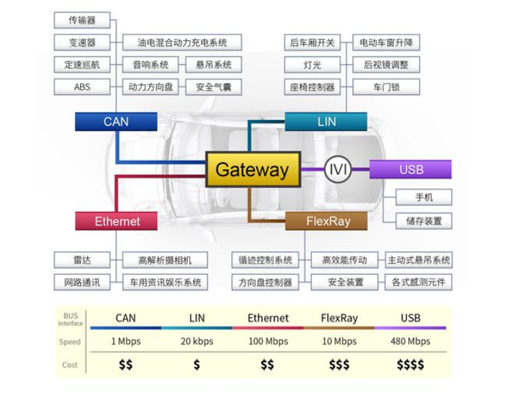 图2:主流车用网络系统架构图