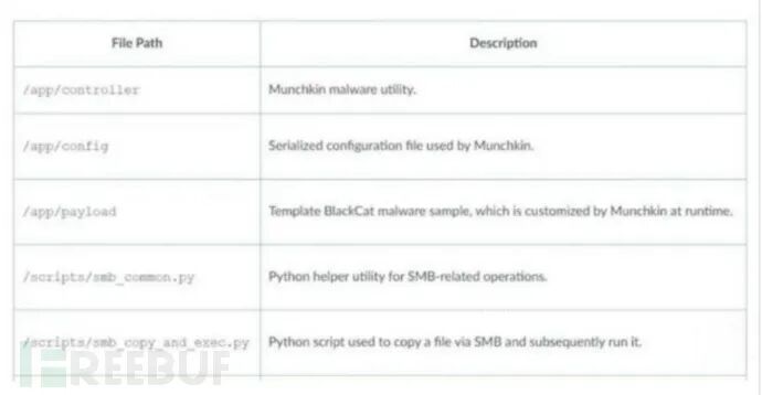 今年11月,BlackCat运营商宣布对他们的工具进行更新,包括一个名为Munchkin的实用程序,它允许攻击者将BlackCat有效负载传播到远程设备和受害者组织网络上的共享。
