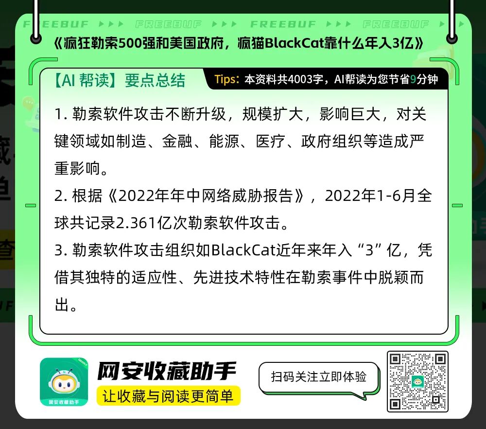 诸如BlackCat这样的勒索软件攻击作为一种最为常见的网络安全威胁之一,发生频率极高,无论是对于个人还是企业来说,其造成的危害、损失及影响都是不可预估的。