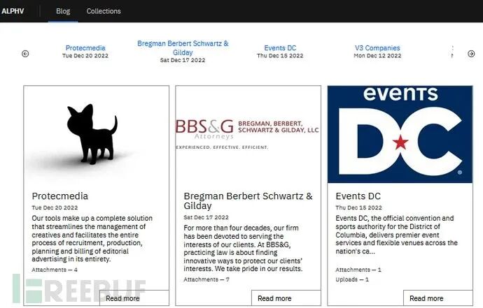 自2021年11月30日起,BlackCat勒索软件背后的攻击组织开始在Tor网站专用数据泄露站点(DLS)陆续发布受害者信息和窃取到的数据。