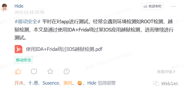 阅读须知亲爱的读者,我们诚挚地提醒您,WebSec实验室的技术文章仅供个人研究学习参考。任何因传播或利用本实验室提供的信息而造成的直接或间接后果及损失,均由使用者自行承担责任。WebSec实验室及作者