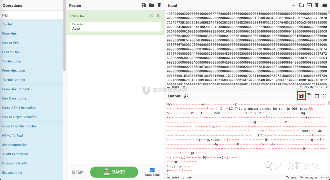 说明这是一个应用程序,使用CyberChef转换并导出DLL文件: