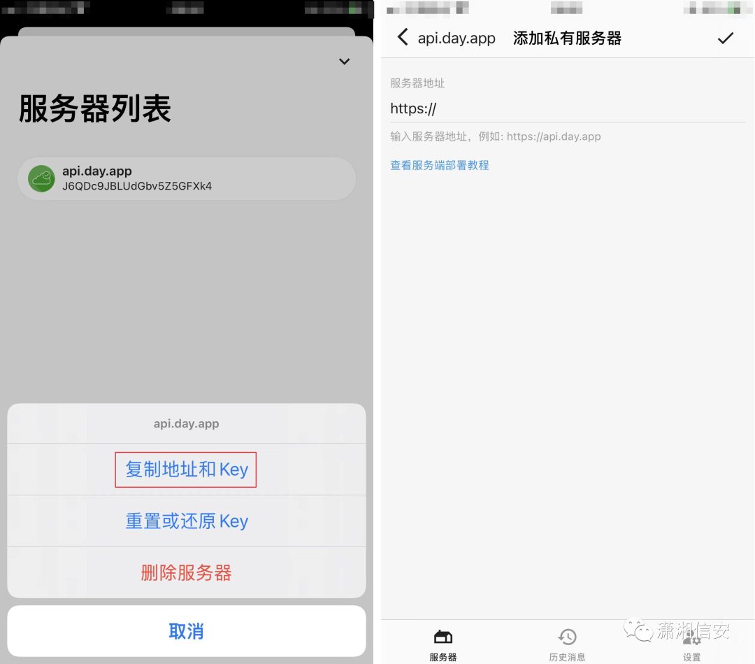 右上角有两个按钮选项,云是查看服务器列表(可复制地址和Key),默认用官方API接口,+是可以添加我们自己部署的私人API接口(可查看服务端部署教程)。