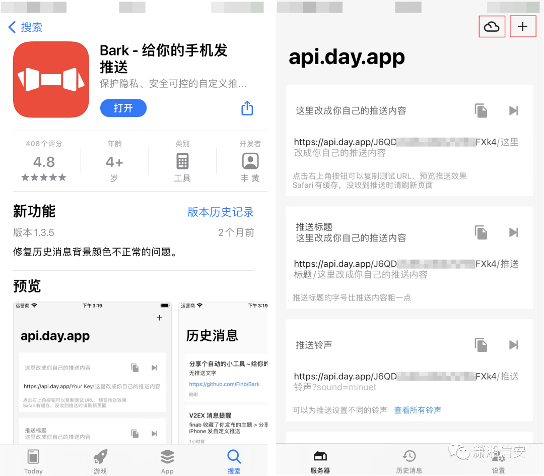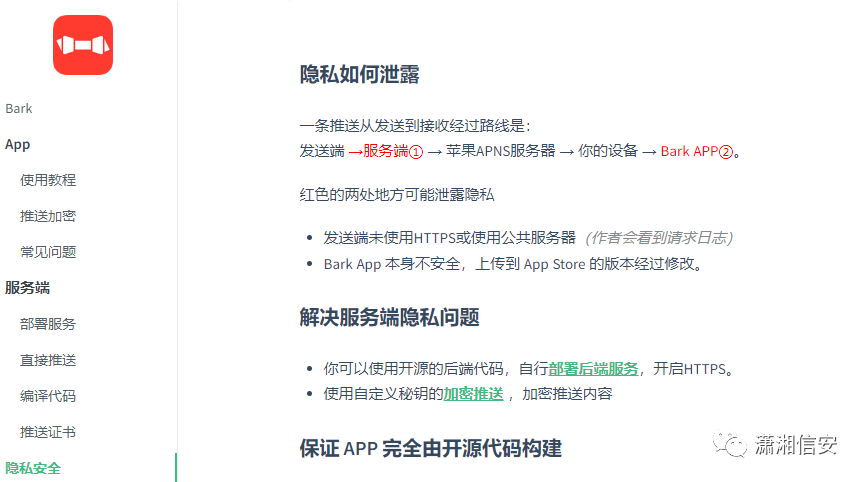 https://github.com/finb/barkbark-server是完整开源的Bark服务端,用来接收用户的推送请求并转发给苹果APNS,如果对于隐私要求高的可以在自己的私人服务器进行部署,以防止发送的信息被别人窥视。