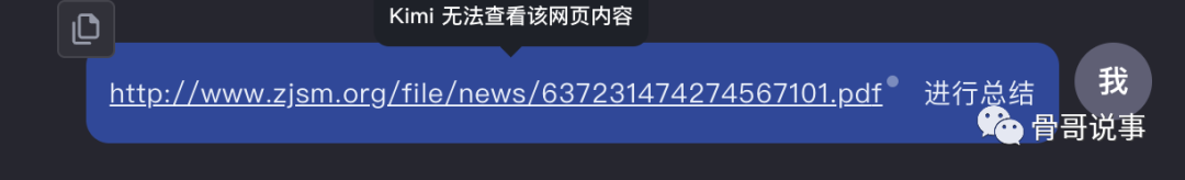 当然有些网址丢给它,因网站的各种限制会导致Kimi无法访问,因此就无法获取内容了。
