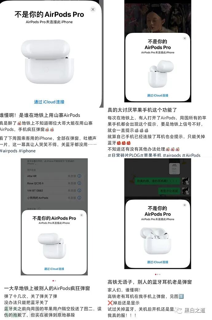 当你正开心地用手机看小说、新闻...忽然出现一个弹窗,提示“不是你的AirPods”。不用说,这又是谁打开了AirPods 耳机盖。对于这个问题,果粉们只能心里吐槽一句,直接点掉。但随后,手机又立马跳出一个弹窗,你不禁想骂人,谁在玩AirPods盒子吗?接下来才是最梦幻的,你的iPhone不仅跳出AirPods弹窗,还有AirPods Pro的弹窗,甚至还有Apple TV...