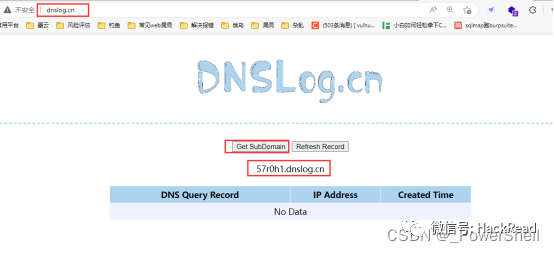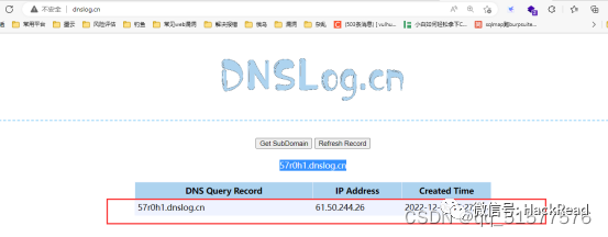 这里使用的dnslog平台是dnslog.cn,获得的域名是57r0h1.dnslog.cn。