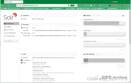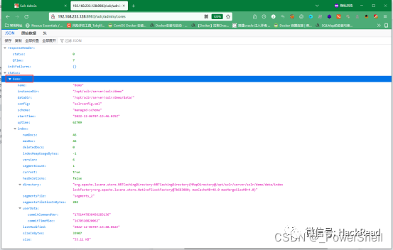 访问http://ip:8983/solr/admin/cores,查看有哪些core。可以看到有个core名字为demo。