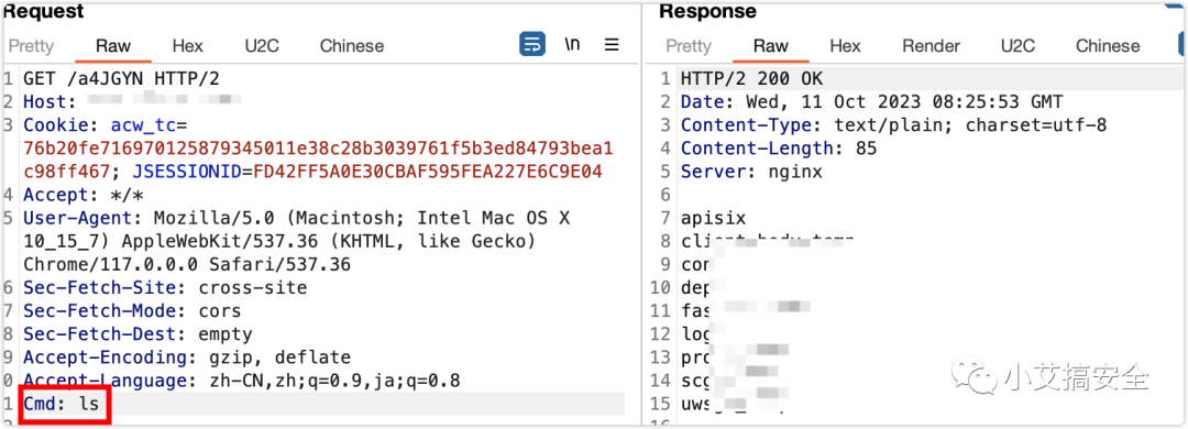 但是后面执行命令,有的时候会被阿里云给拦掉,于是构造lua脚本时把传参和命令输出做了倒转,防止被流量检测到