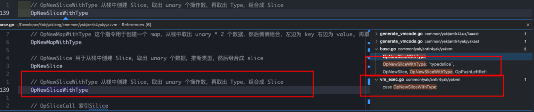恢复符号以后发现该代码项目与题目 Readme 提示中的一致,主要代码都来自于 https://github.com/yaklang/yaklang, 主要使用的是 https://github.com/yaklang/yaklang/tree/main/common/yak/antlr4yak 包里的内容。直接去看这些函数,在 main 分支的源码中都是存在的,也有很多对应的测试样例,可以了解这些 API 的使用。
