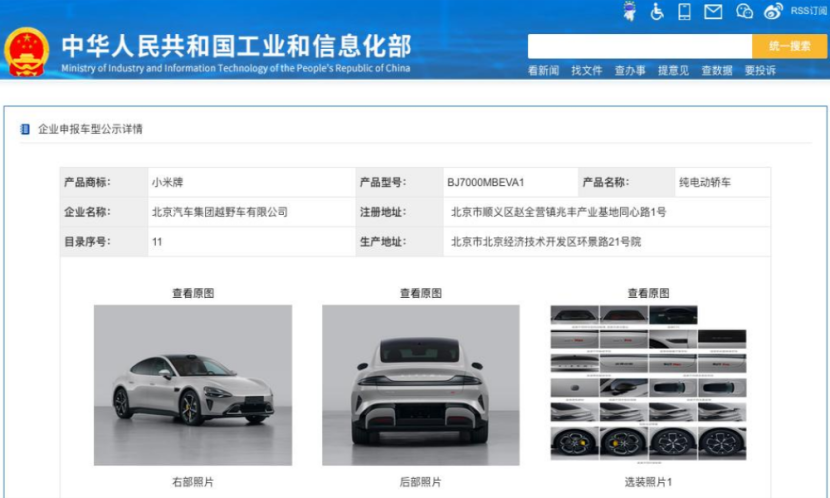 11月15日,工信部公布第377批《道路机动车辆生产企业及产品公告》新产品公示文件中,小米汽车位列其中。产品商标为小米牌,定位纯电动轿车。