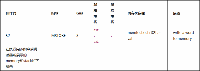 04执行前,调试器中显示的Memory为No data available,但EVM实际执行过程中在此处是否真为空暂时无从得知。MSTORE在以太坊官网的虚拟机操作码说明书中有如下定义:Stack: