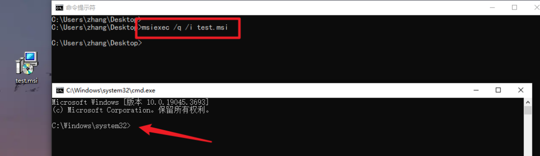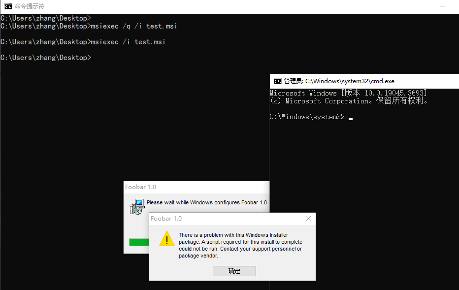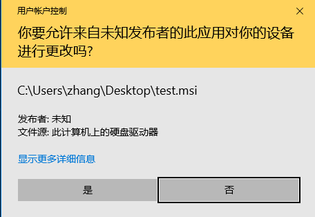 msiexec /q /i test.msiwin10执行的时候如果不加/q参数,就会出现以下弹窗