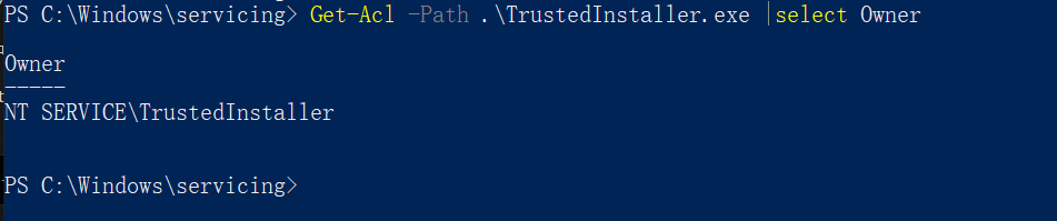Get-Acl -Path .\TrustedInstaller.exe |select Ownerpowershell默认不支持Set-NtTokenPrivilege命令,该模块需要下载安装