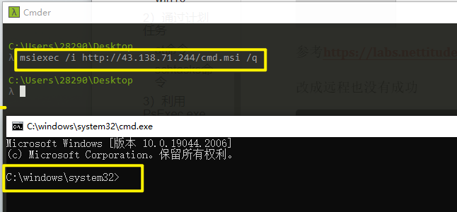 可以把生成的cmd.msi上传到服务器,远程执行msi获取system权限